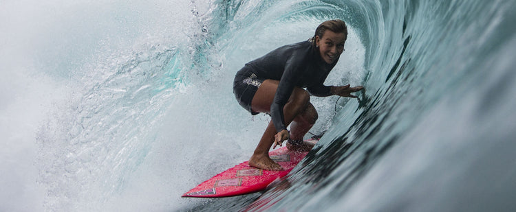 Always full of surprises, Jaleesa is known for her ever-changing hairdos, surreal surf edits, and a quirky side hobby in skeleton articulation—she loves keeping people guessing. Recently shaping her very first board gave her a deep respect for the craft, saying, “I didn’t even know what a concave was. Board shaping is such an art, and I would love to do it again.”