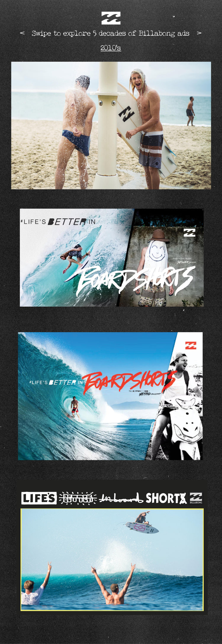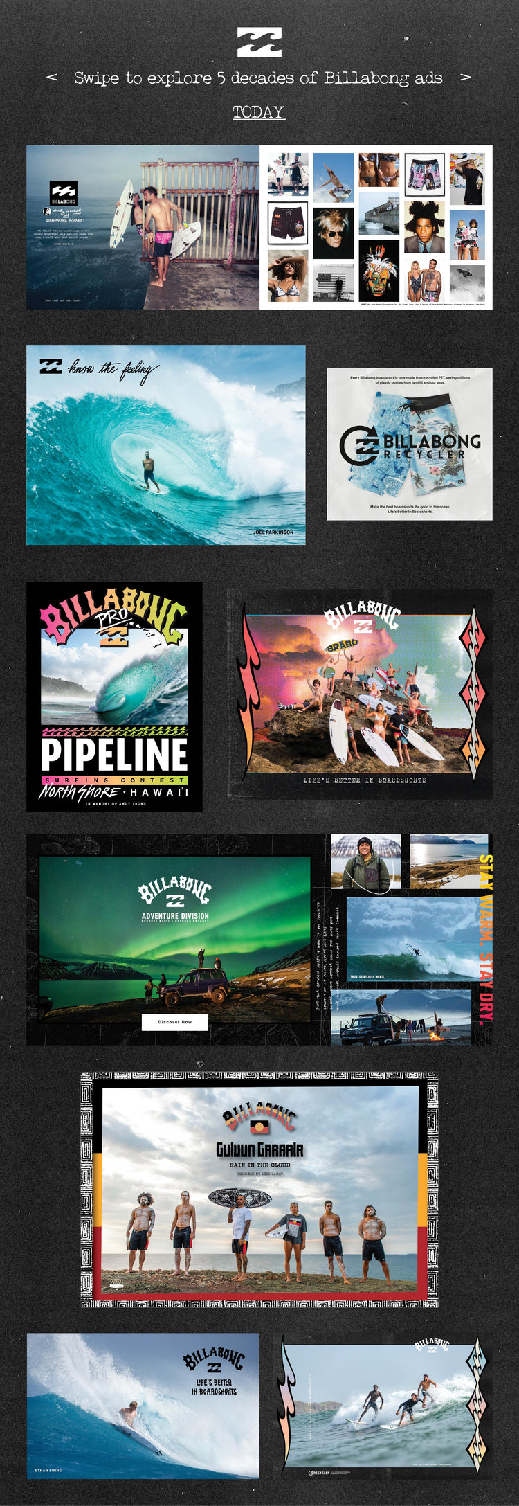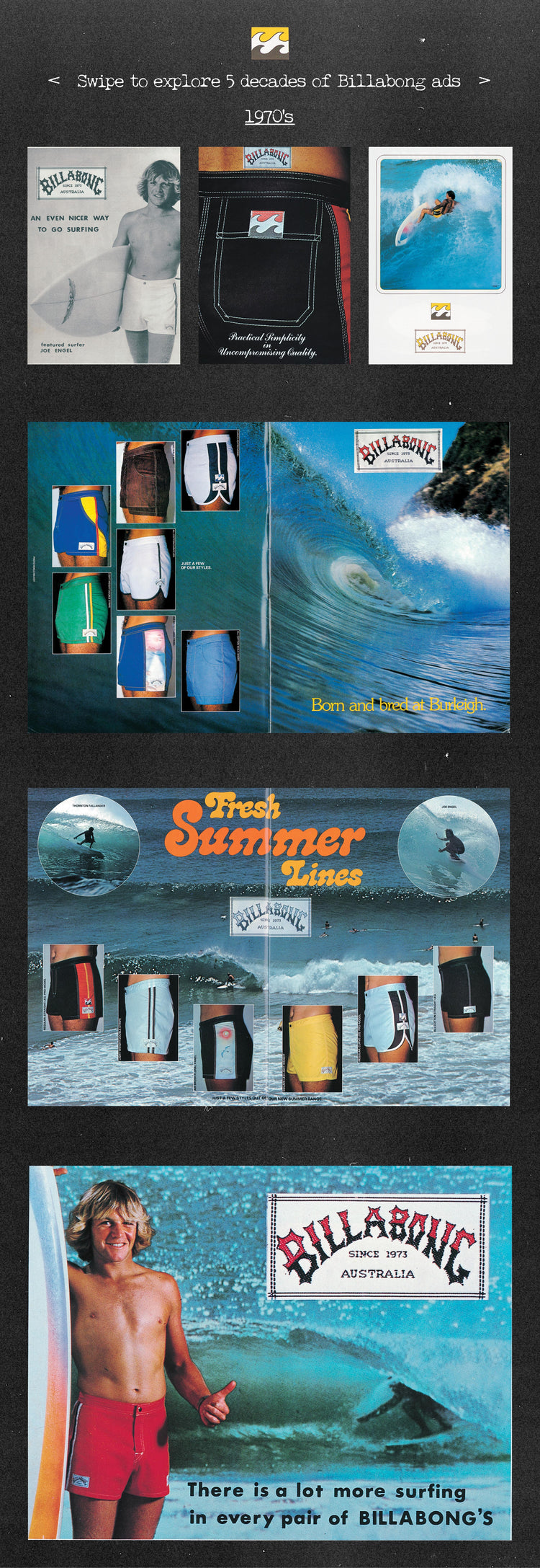 Five Decades of Progression. In the early years, Billabong founder Gordon Merchant had a golden rule for his team: ""Never look in the rearview mirror."