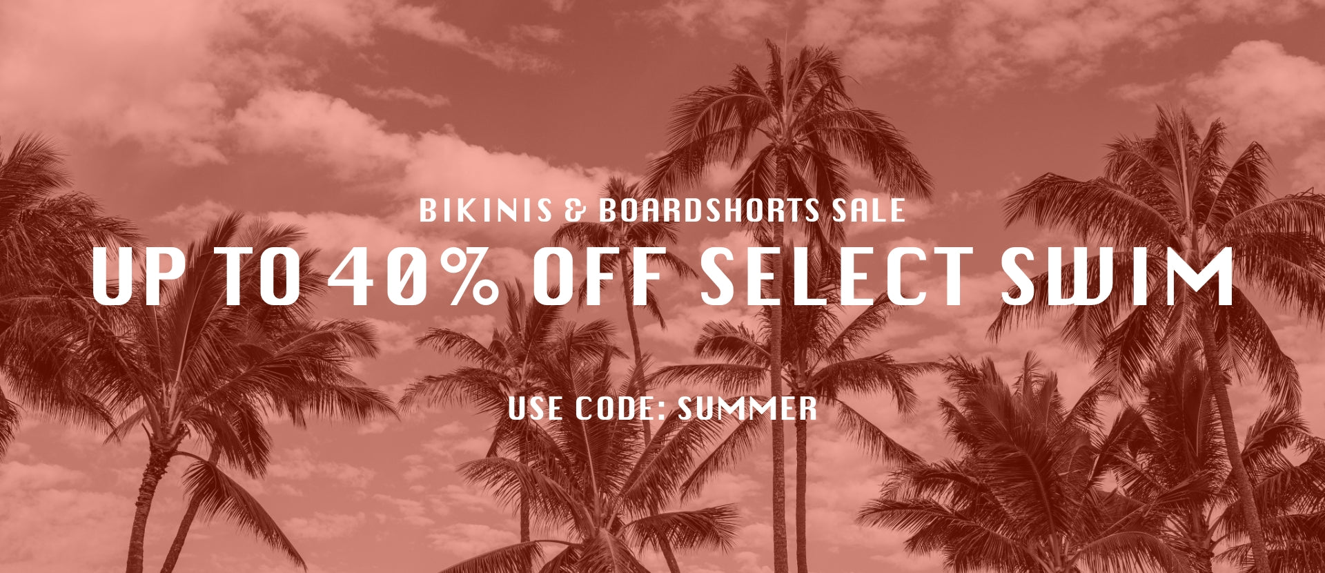 Bikinis & Boardshorts Sale Take Up to 40% off Select SwimUSE CODE: SUMMER*exclusions apply Shop All Shop Womens Shop Mens
