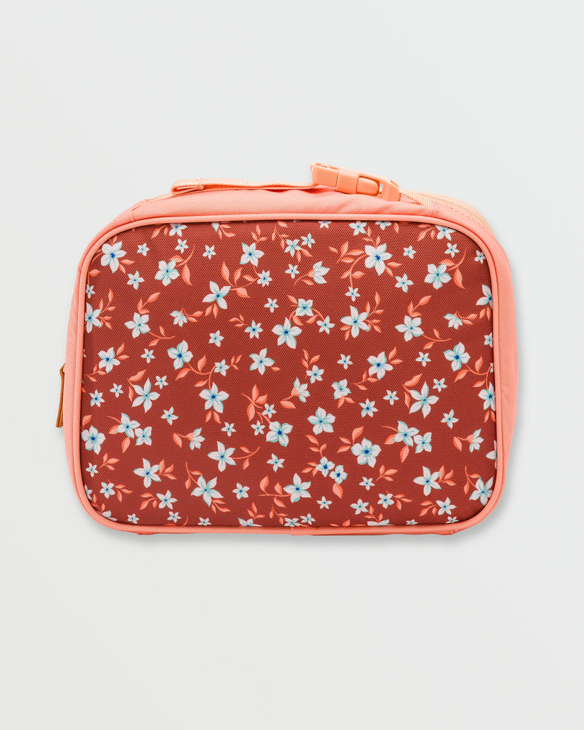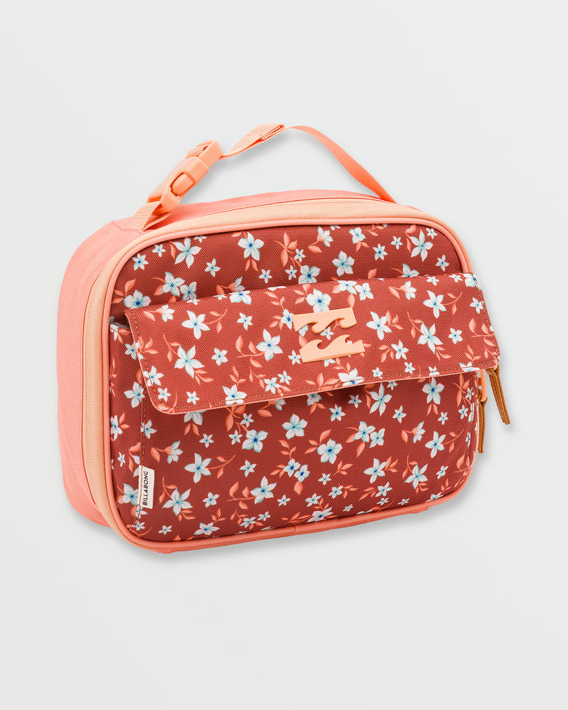 Take your fresh food fix on the road with our Billabong insulated Lil Chill lunchbox. Compact yet mighty, this polyester pack keeps meals chilled thanks to its thermal liner. A branded look complements its functional front pocket and handle for stylish portability everywhere. Featured here in the Sedona colorway.