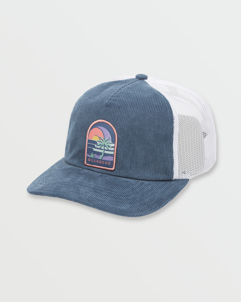 The Billabong Lounge Trucker Hat nails that perfect just-rolled-out-of-bed look. Unstructured and adjustable, its medium profile and demi-curved brim exude casual cool. Featuring seasonal art and a woven flag label, this 5-panel hat is your new everyday essential for skate sessions, surf checks or just lounging. Featured here in the Carolina Blue colorway.